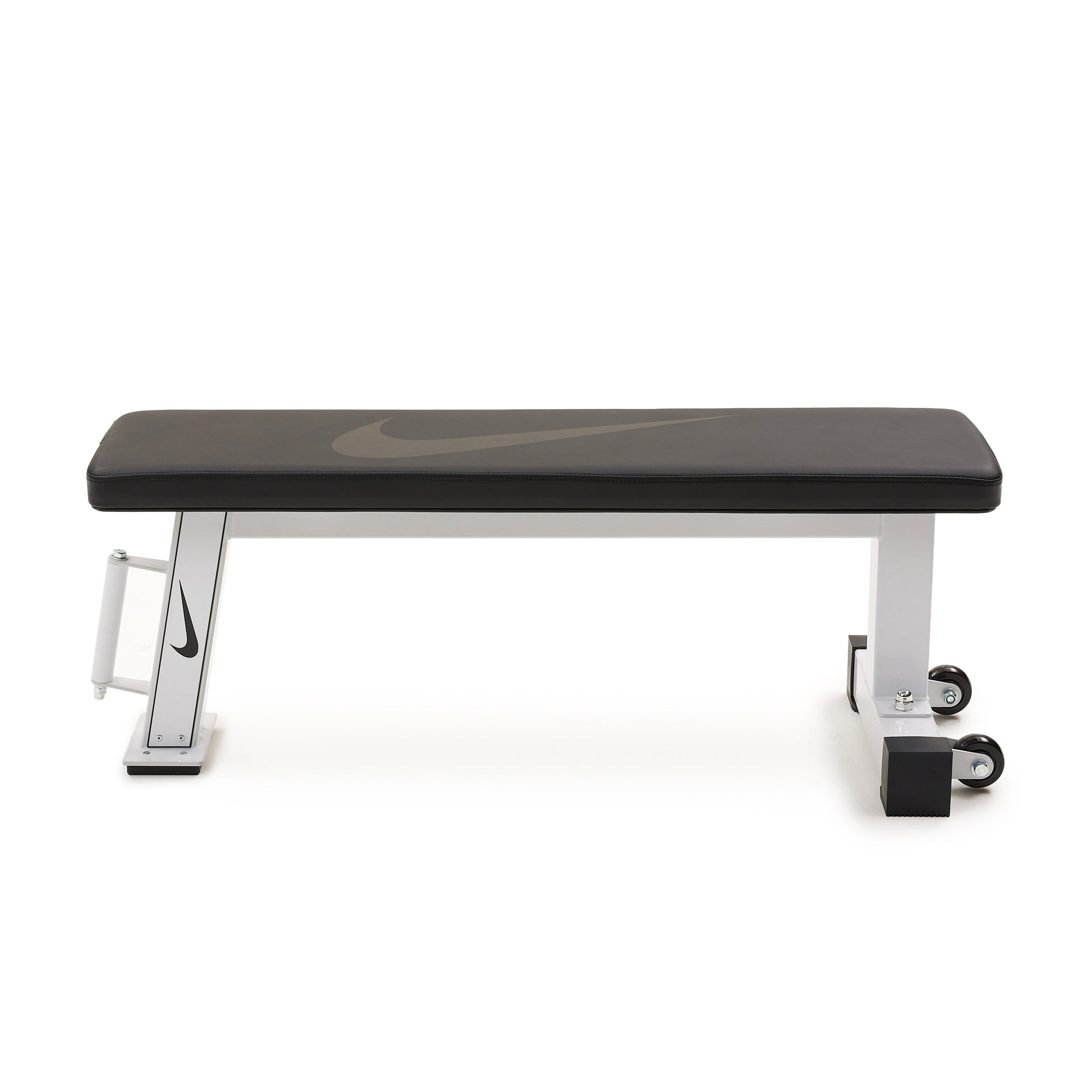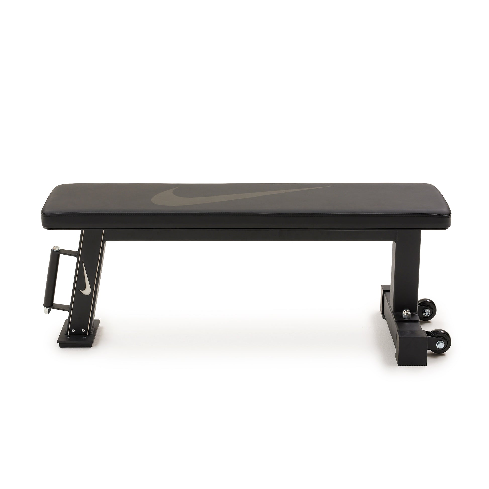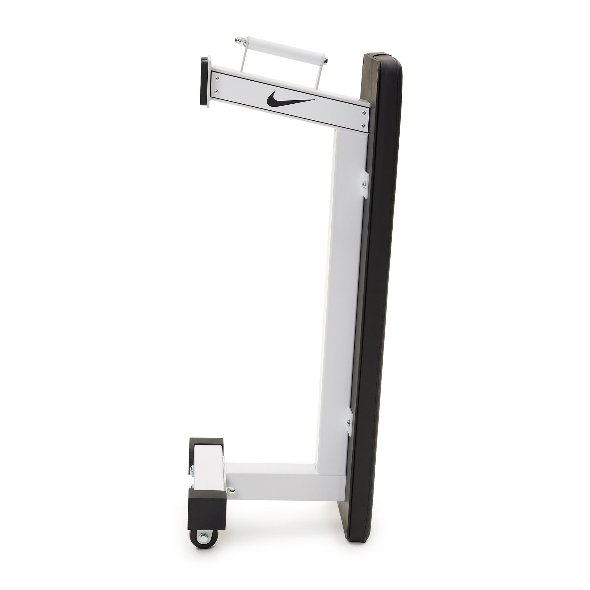 The Nike Rolling Weight Bench, your ultimate workout partner that's as versatile as it is portable! Crafted from top-notch materials such as powder-coated steel, durable synthetic leather, and firm foam padding, it delivers unmatched comfort and rock-solid support. Plus, flaunt your style with the prominent swoosh logo. Equipped with premium TPU wheels and a sturdy vertical handle, it's mobility redefined. And when it's time to save space, this bench stores upright effortlessly.